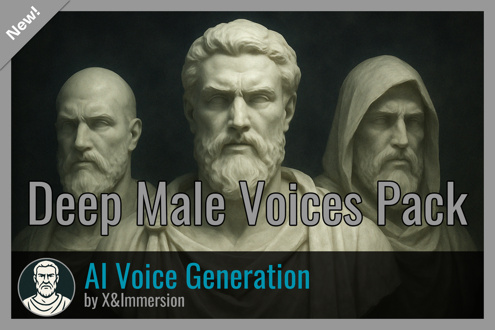 🎙️ Generate endless dialogue with the 3 unique deep male voices profiles in this pack. Perfect for heroes, old warrios and even villains!